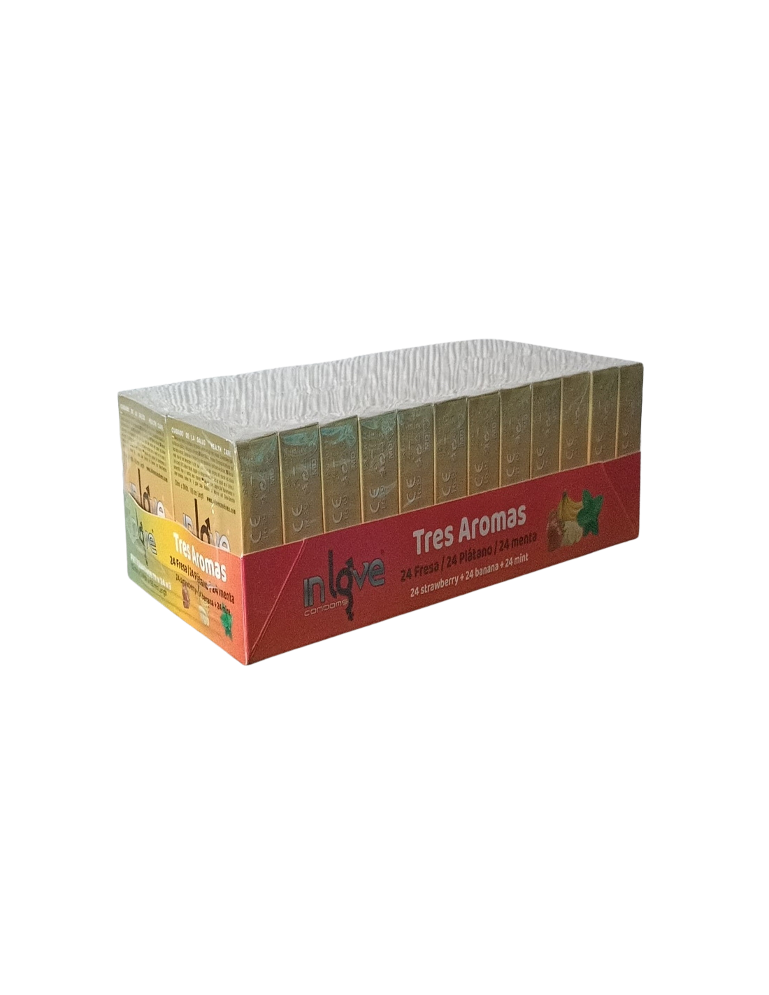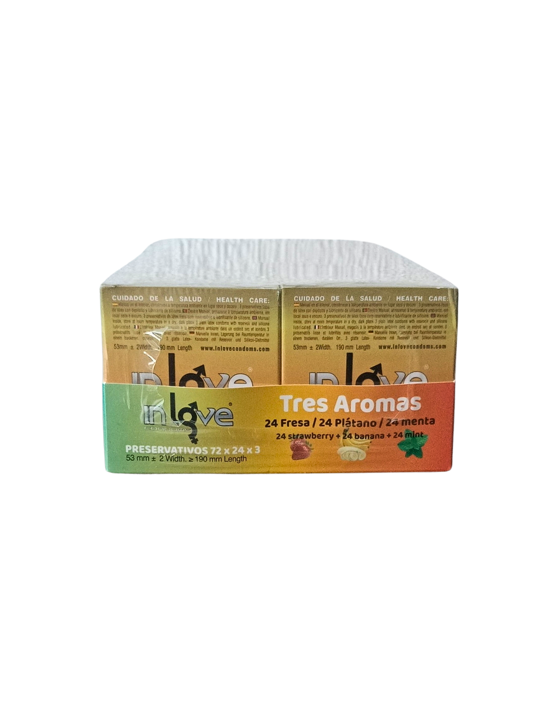 Preservativos IN LOVE CONDOMS 3 aromas (fresa, banana, menta).